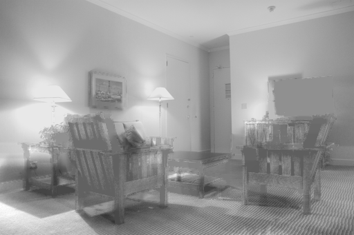 The input image is decomposed into a "reflectance" and "shading" layer. Note that the reflectance layer is listed twice: color (left) and grayscale (center). Decompositions are ordered by error and then runtime (best on top). The parameters for each algorithm are the same for all photos; they are set to the values that produce lowest mean error (WHDR) for all photos. See our publication for more details.